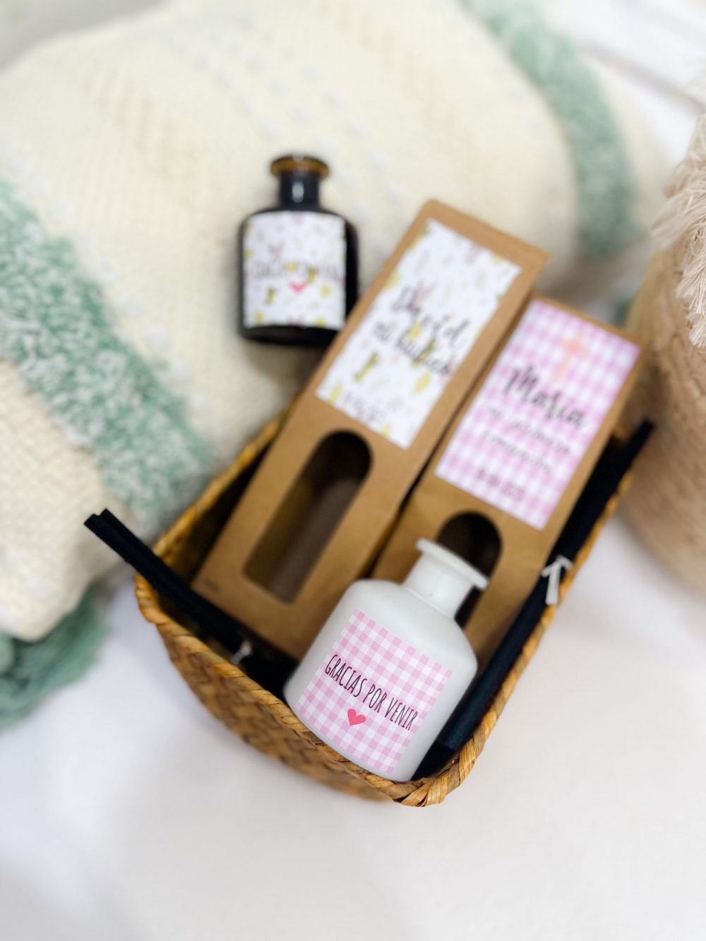 Nuestro mikado ambientador personalizado está diseñado para crear un ambiente agradable y fresco en cualquier celebración. Con una fragancia delicada y duradera, será el detalle perfecto que tus invitados podrán llevarse como recuerdo.