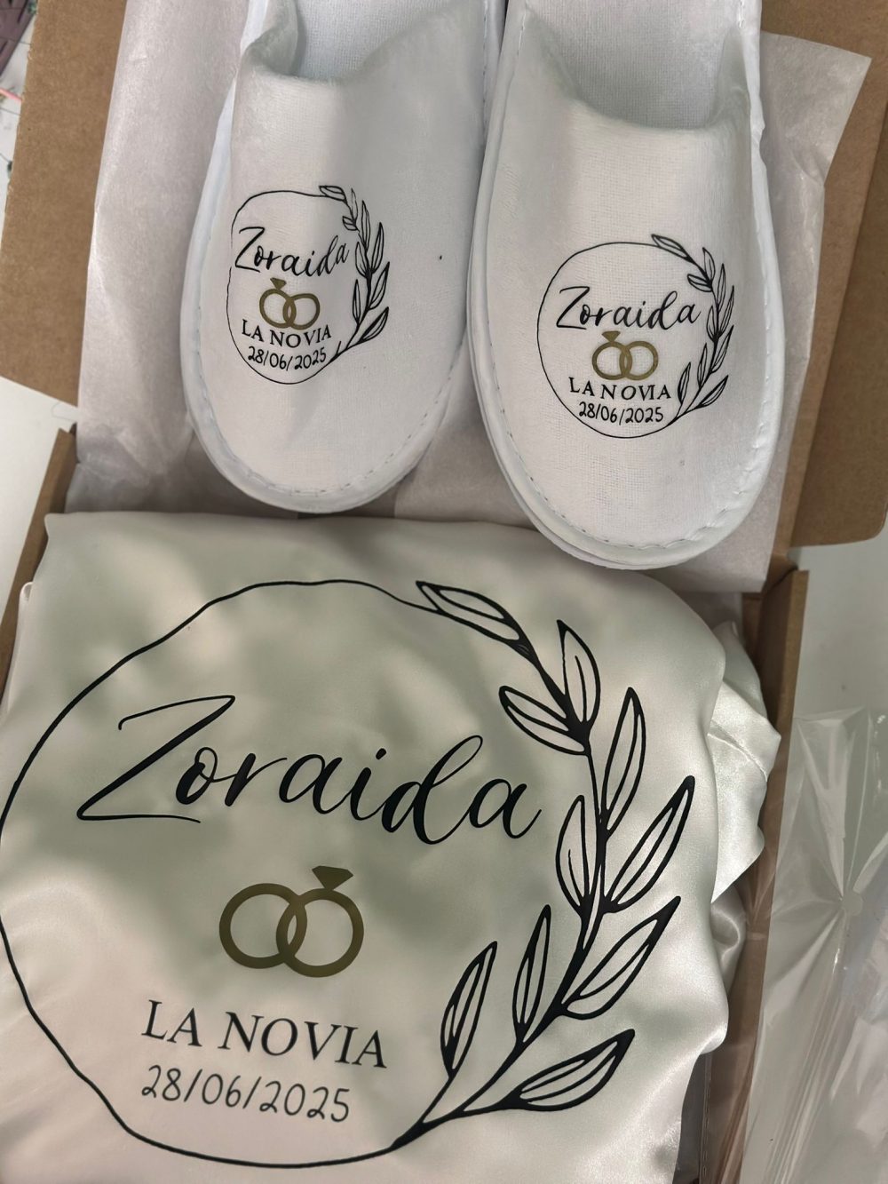 Sabemos que cada novia es única, y nuestras batas personalizadas son una forma encantadora de resaltar su individualidad. Cada bata se puede personalizar con el nombre o las iniciales de la novia, lo que le da un toque personal y exclusivo a este regalo especial.
