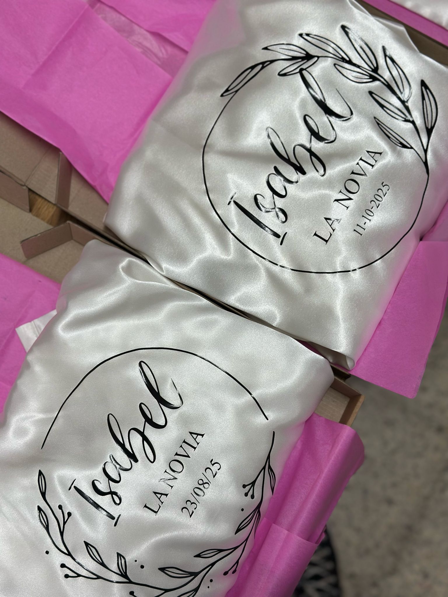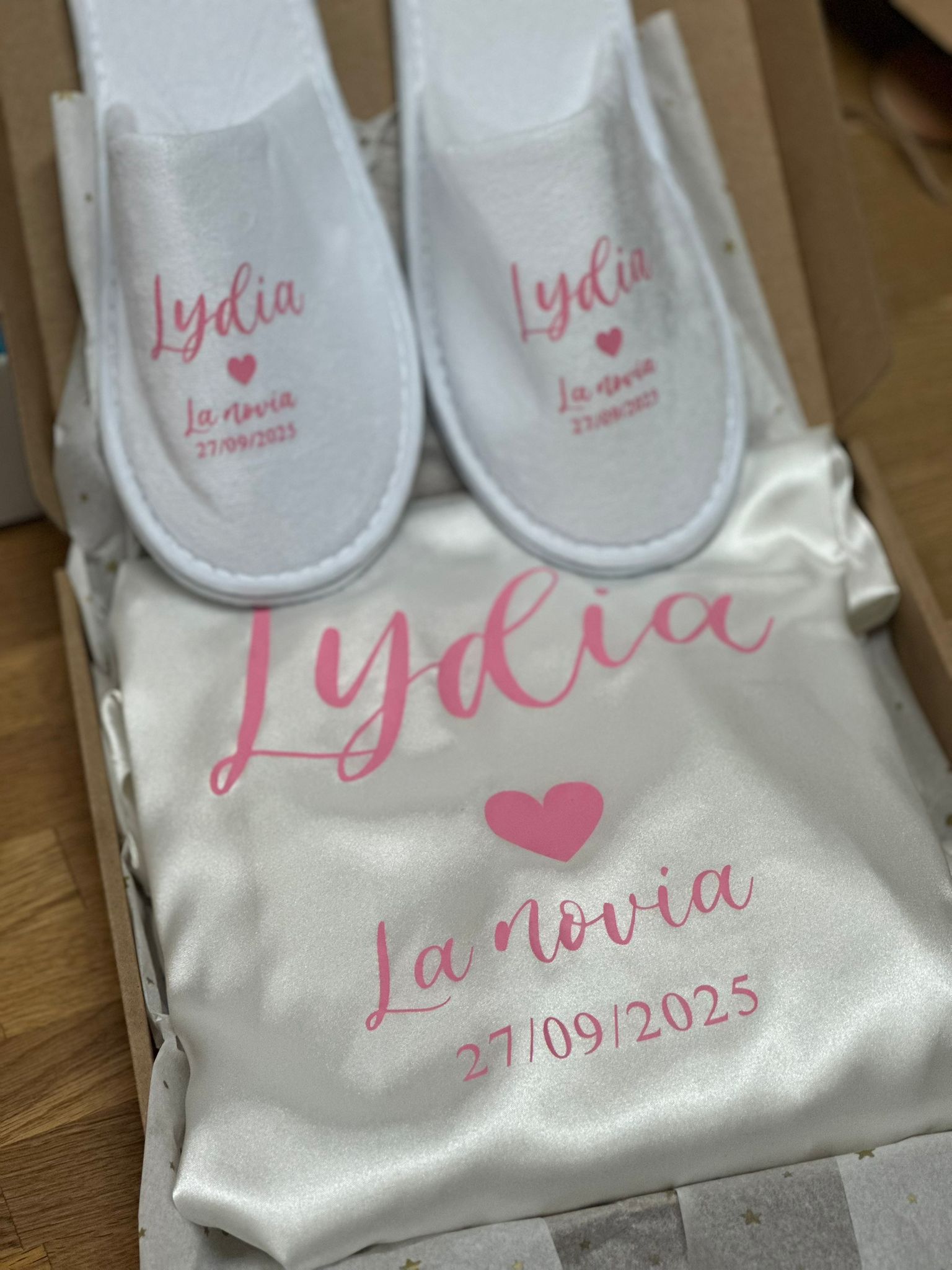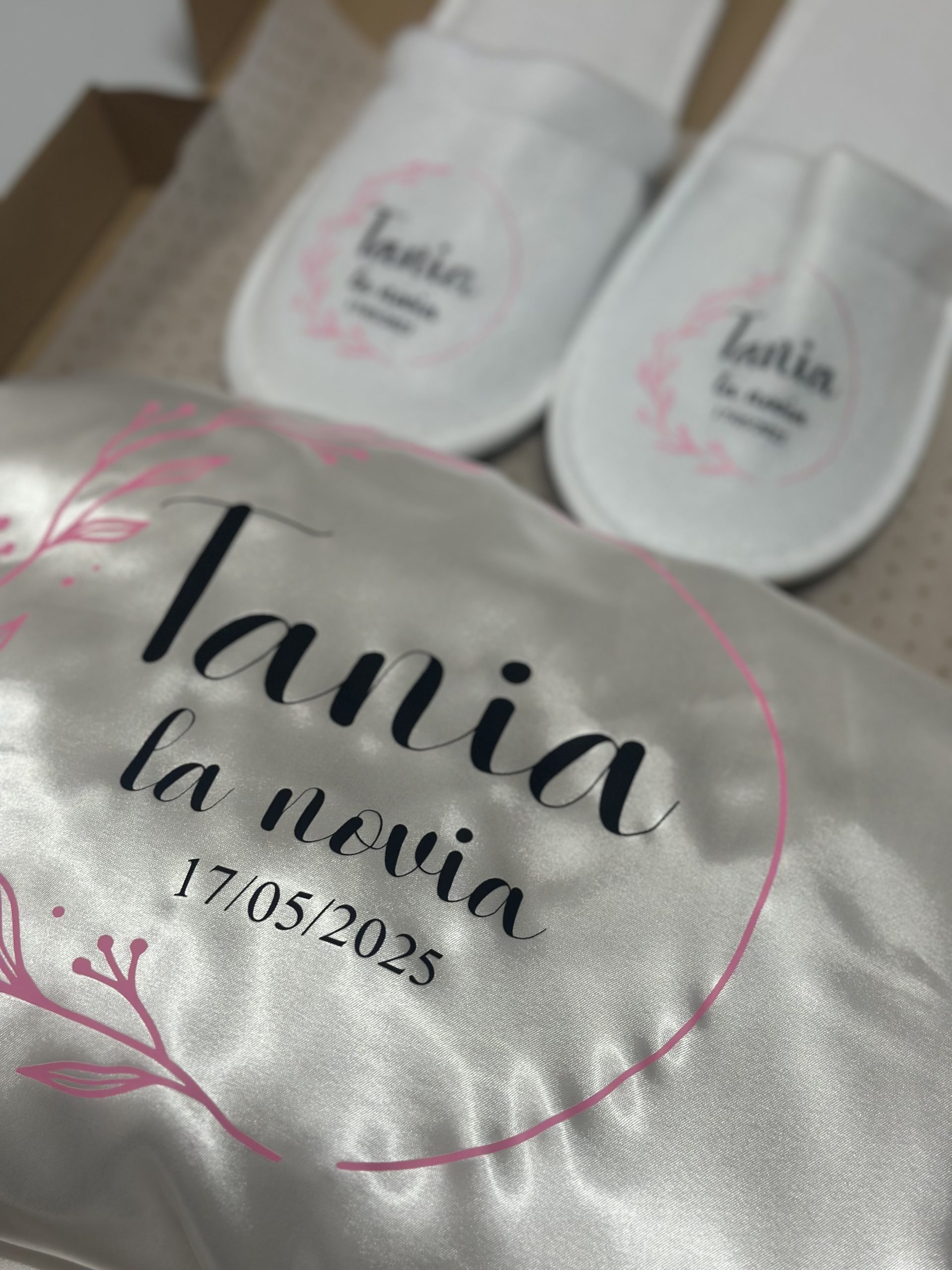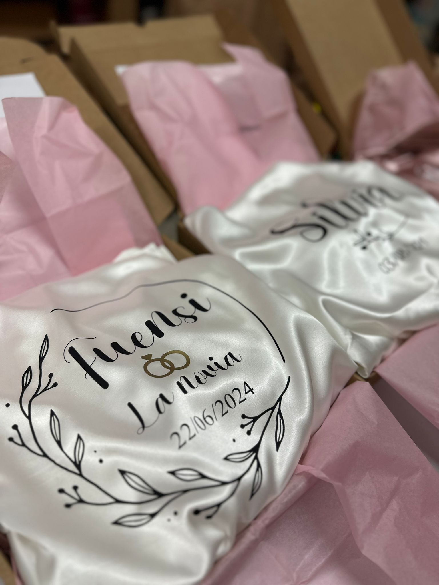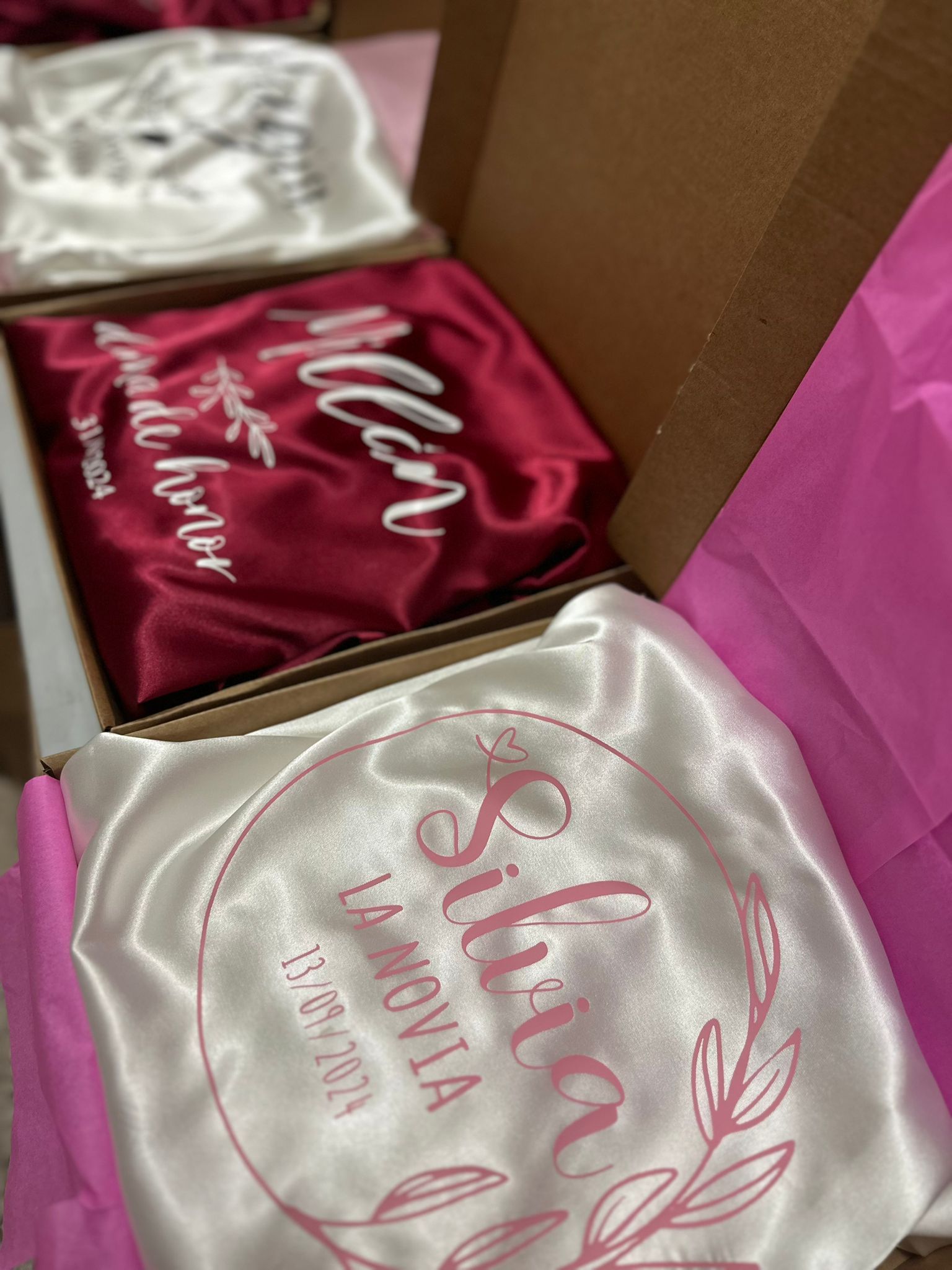 Sabemos que cada novia es única, y nuestras batas personalizadas son una forma encantadora de resaltar su individualidad. Cada bata se puede personalizar con el nombre o las iniciales de la novia, lo que le da un toque personal y exclusivo a este regalo especial.