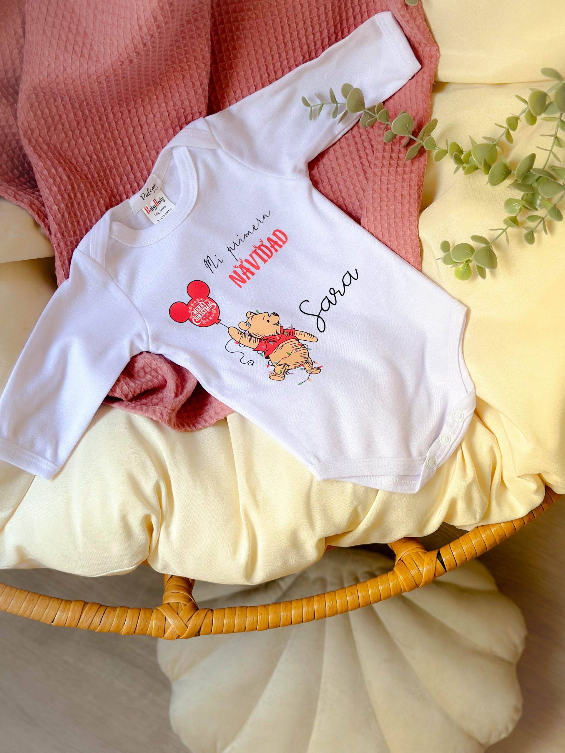 Celebra un momento inolvidable con el adorable body Disney «Mi Primera Navidad», diseñado especialmente para los más pequeños de la casa.