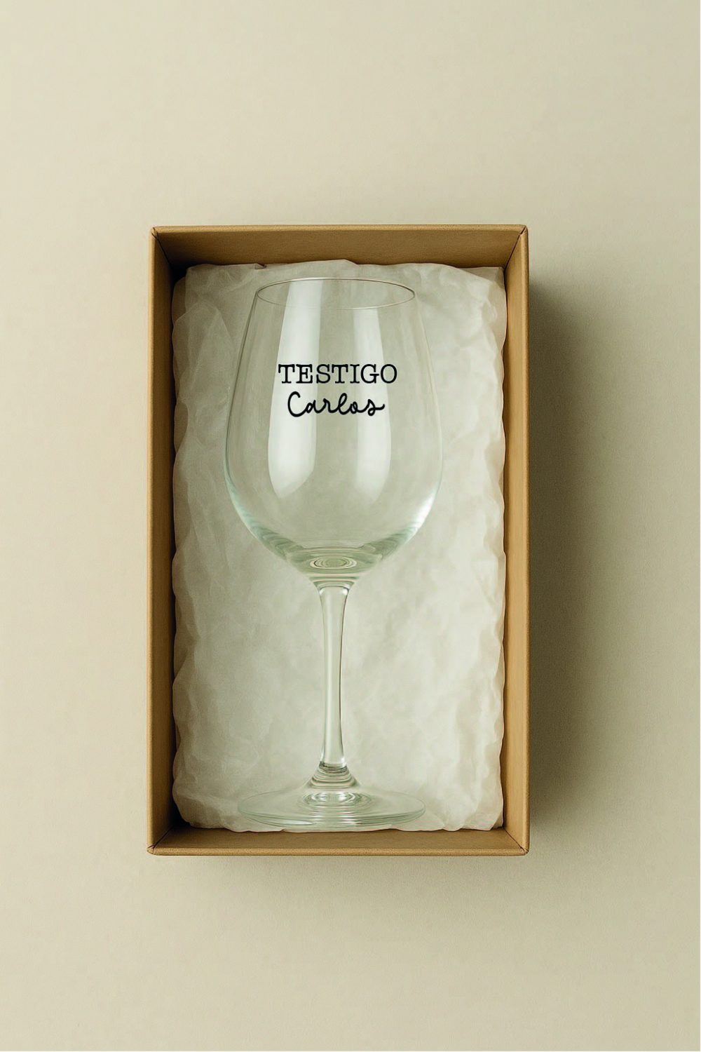 Regalar una copa testigo de vino personalizada no es solo un gesto, es una manera de decir “gracias” a quienes te acompañarán en este momento tan importante. Además, al tratarse de un objeto práctico, los testigos podrán conservarlo y utilizarlo mucho tiempo después de la boda, recordando siempre ese día