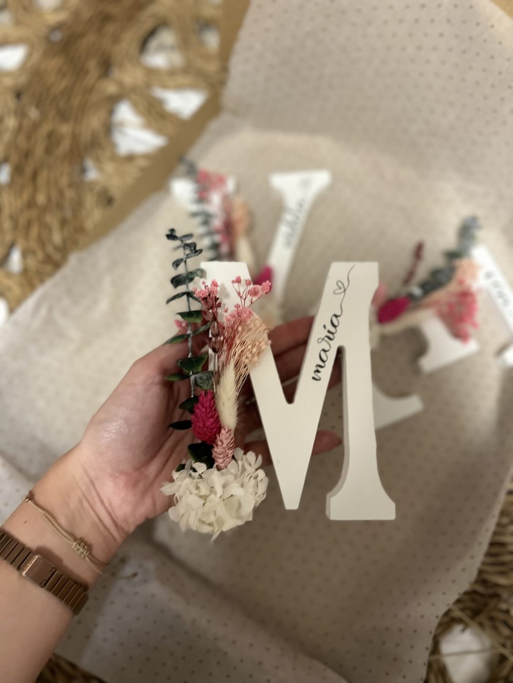 Sorprende con una pieza única y delicada: nuestra inicial con flores preservadas en tonos roas.Este regalo es ideal para ocasiones como cumpleaños, agradecimientos, decoraciones de boda o simplemente para tener un detalle especial con alguien que quieres. Cada inicial floral está elaborada a mano con flores naturales preservadas que mantienen su belleza y color sin necesidad de agua ni cuidados especiales.