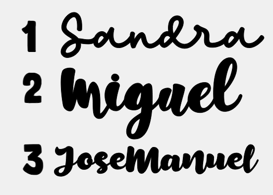 - Tamaño: 9 de largo aprox x 3,2cm de alto aprox. (depende de la tipografía)