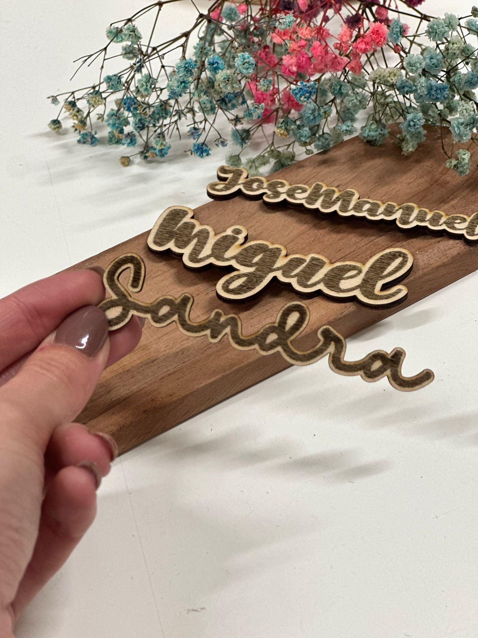 Nuestros **marcasitios de madera personalizados** son perfectos para bodas y eventos. Puedes añadir nombres para cada invitado, creando un detalle elegante y único para tus mesas que dejará un recuerdo inolvidable.