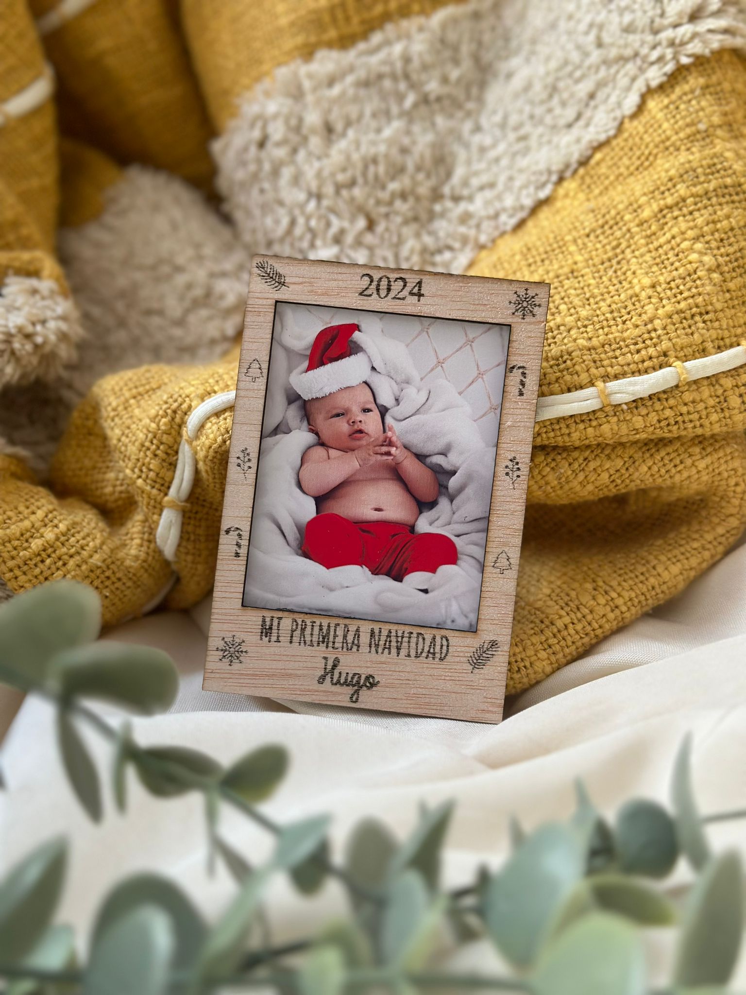 Convierte una foto especial en un recuerdo eterno con este marco de madera personalizado. Celebra con estilo y emoción esa primera Navidad y crea un detalle único que siempre evocará sonrisas.
