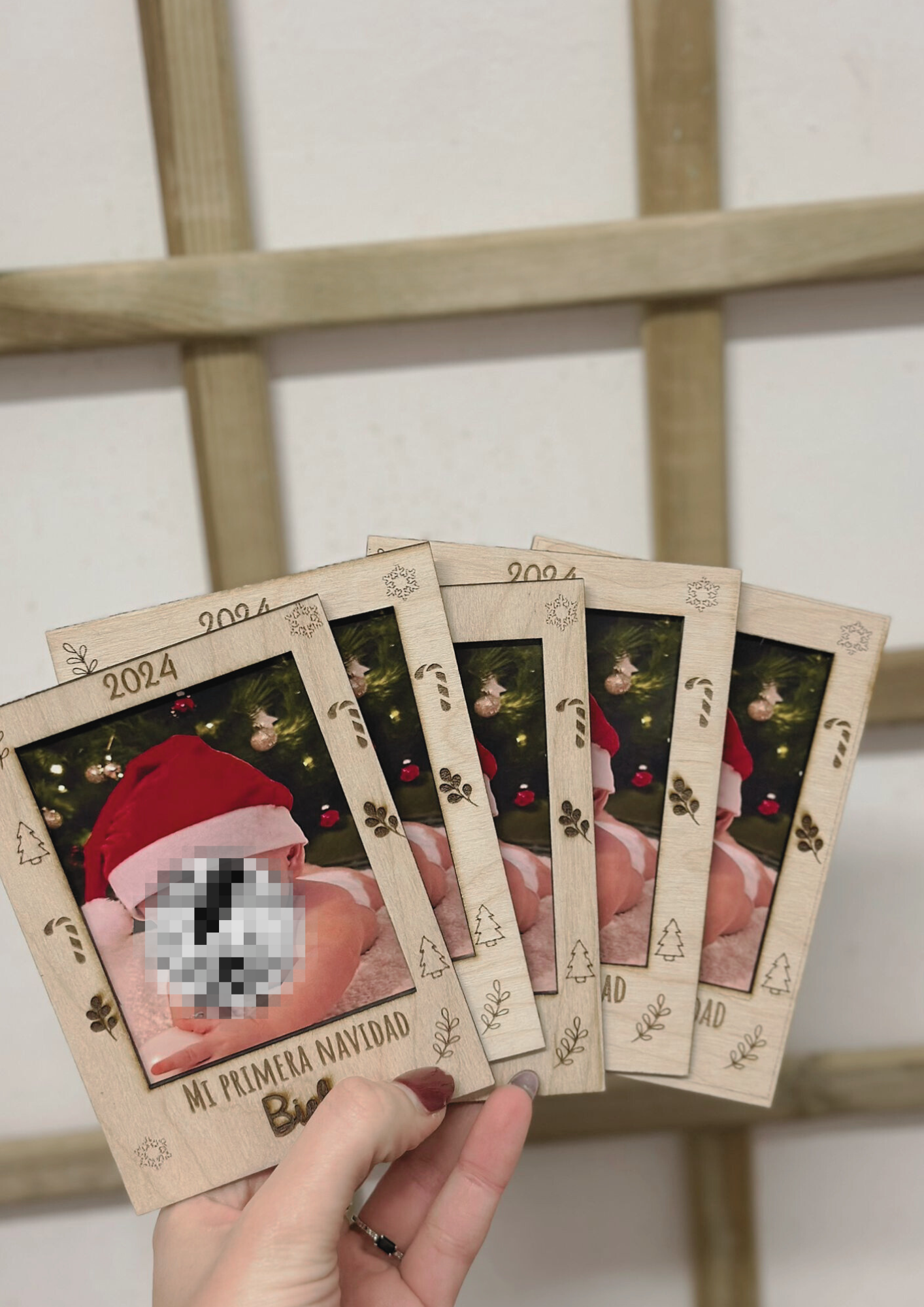 El marco de foto de madera está diseñado para destacar la ternura y la alegría de la primera Navidad de tu pequeño. Gracias a su acabado natural y su diseño personalizado, se convierte en una pieza decorativa que combina a la perfección con cualquier estilo de hogar.