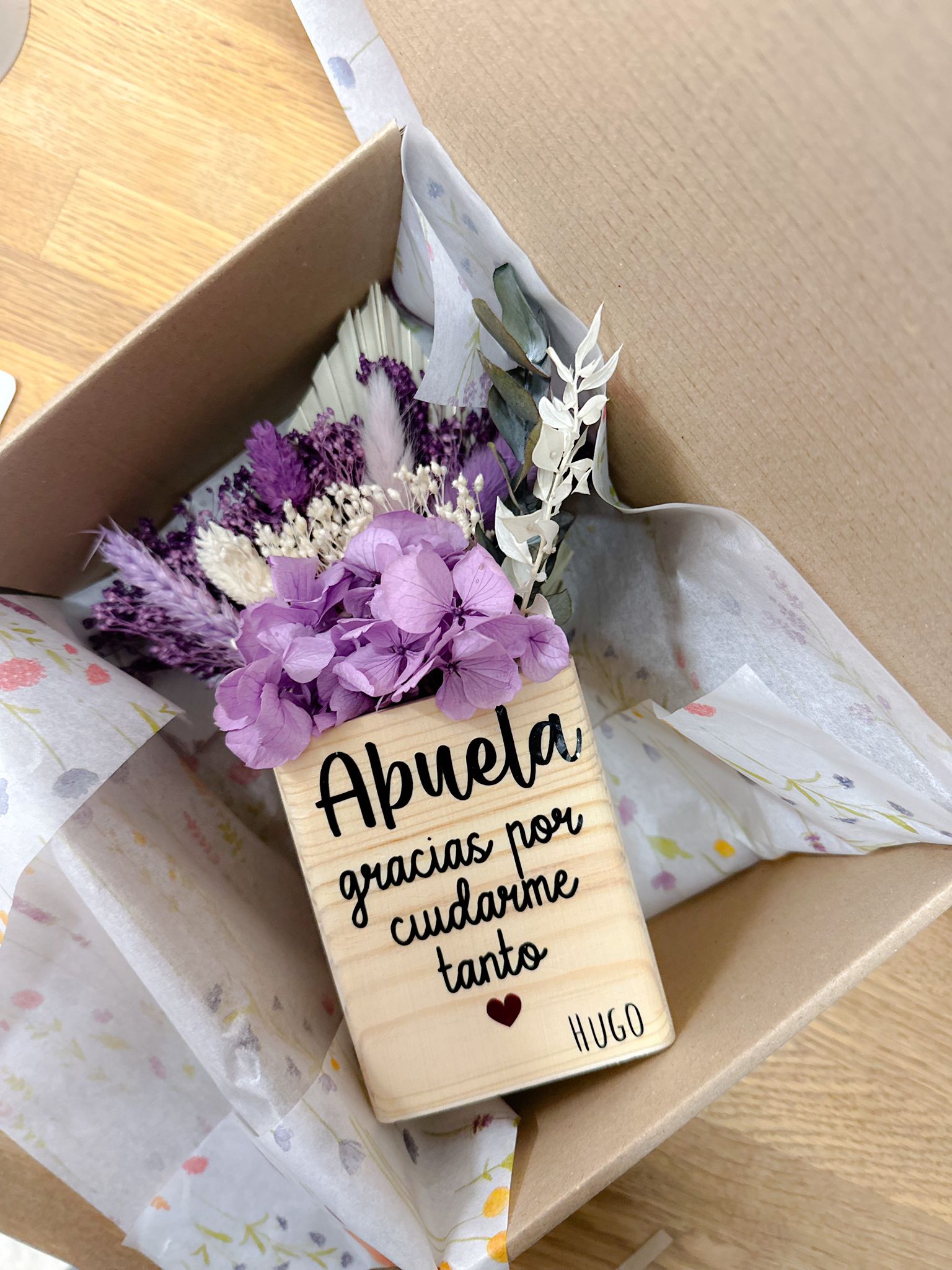 🎁 Un recuerdo elegante, duradero y cargado de emoción.Centro de flores preservadas con mensaje personalizado.