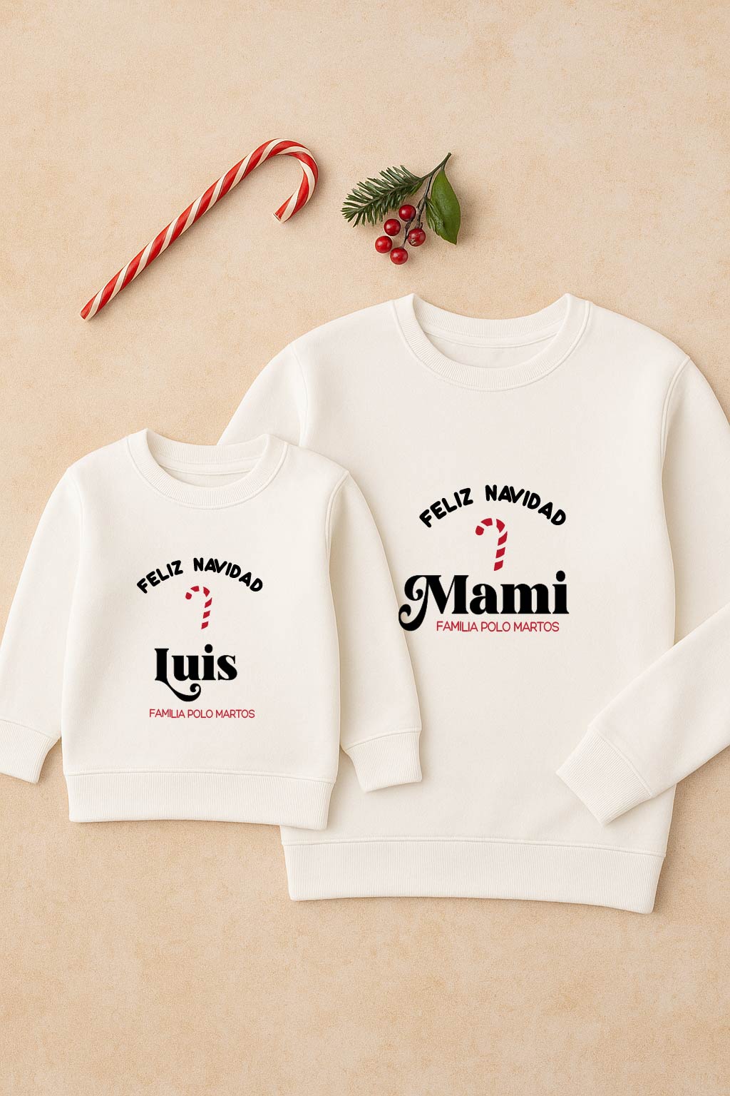 Nuestras sudaderas de Navidad para familia están disponibles en dos diseños diferentes.. Puedes personalizarlas con nombres, frases divertidas, están confeccionadas con materiales suaves y de alta calidad, ideales para mantenerse abrigado durante el invierno sin perder el estilo.