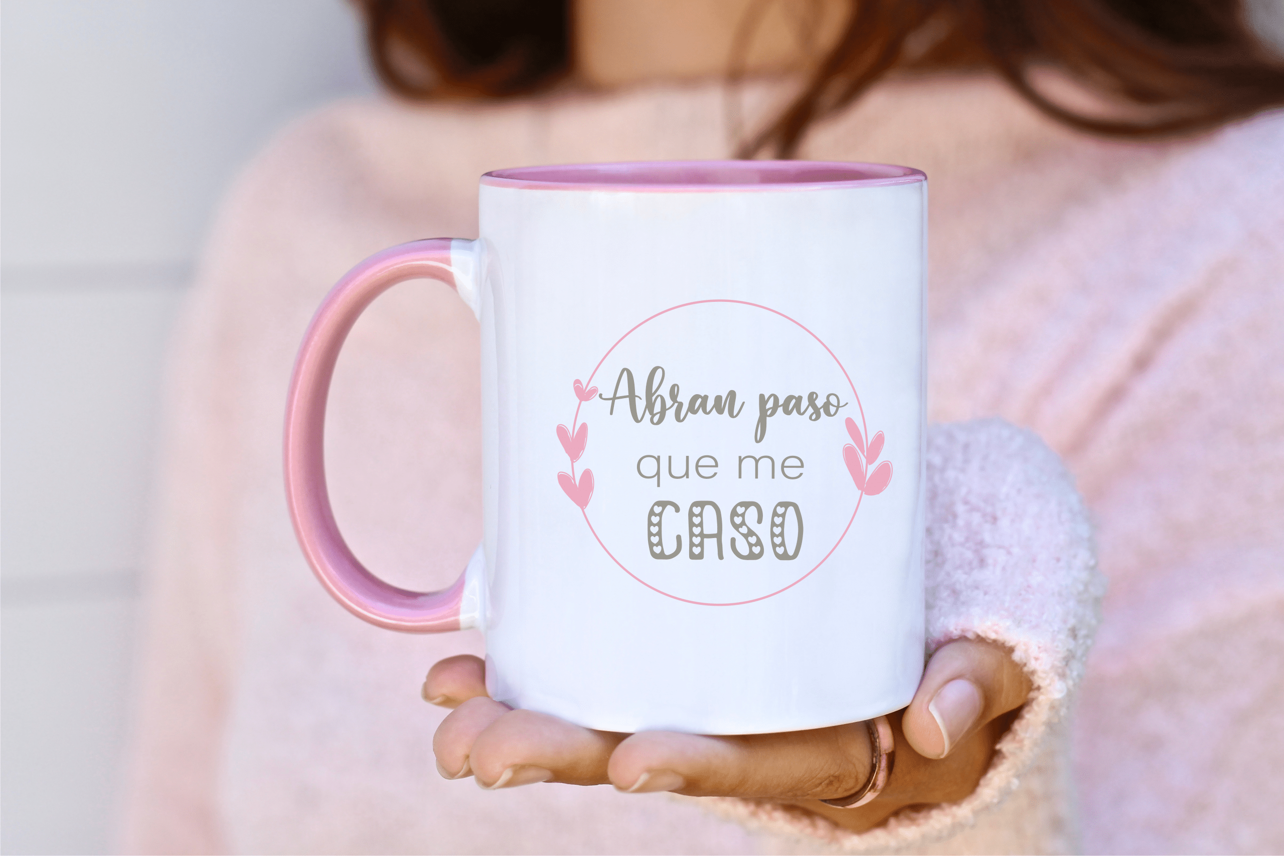 Este diseño no es solo una taza, es un accesorio que destaca por su estilo. La taza personalizada abran paso que me caso con asa rosa puede adaptarse a diferentes ocasiones: